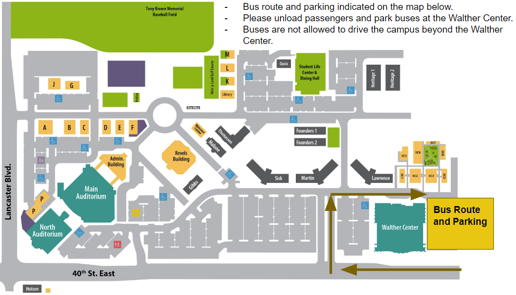 Parking for buses is available on the east side of our campus. Please refer to the below map.